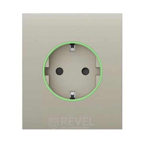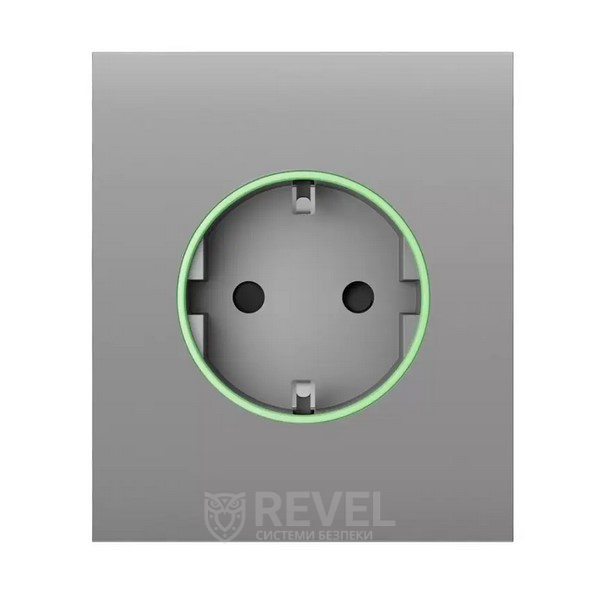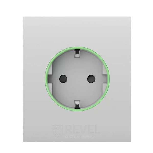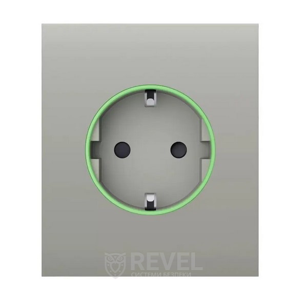 На передній панелі розташоване світлове кільце, що оточує кришку, яке за допомогою світлодіодів відображає стан Outlet (type F) та поточне навантаження. Якщо розетка встановлена правильно за орієнтацією ключа UP, активується сенсорна кнопка у верхньому лівому куті панелі. Нічне підсвічування вмикається в налаштуваннях через мобільний додаток Ajax. Для підключення світлової індикації та сенсорної кнопки передбачені контакти з зворотного боку панелі, які з'єднуються з реле OutletCore (type F).