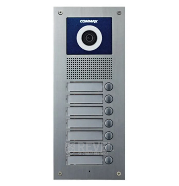 Панель виклику Commax DRC-7UC використовується для двостороннього зв'язку з 7-ма абонентами. Корпус виготовлений з металу (антивандальне виконання) та встановлюється врізним способом.
