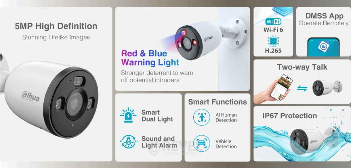 Завдяки поєднанню високої роздільної здатності, розумної аналітики та активних засобів відлякування, камера Dahua DH-F5D-PV стає ідеальним рішенням для захисту приватних будинків, невеликих офісів та магазинів. Швидке Bluetooth-з'єднання та інтуїтивна мобільна програма роблять установку та налаштування максимально простими навіть для користувачів без технічного досвіду.