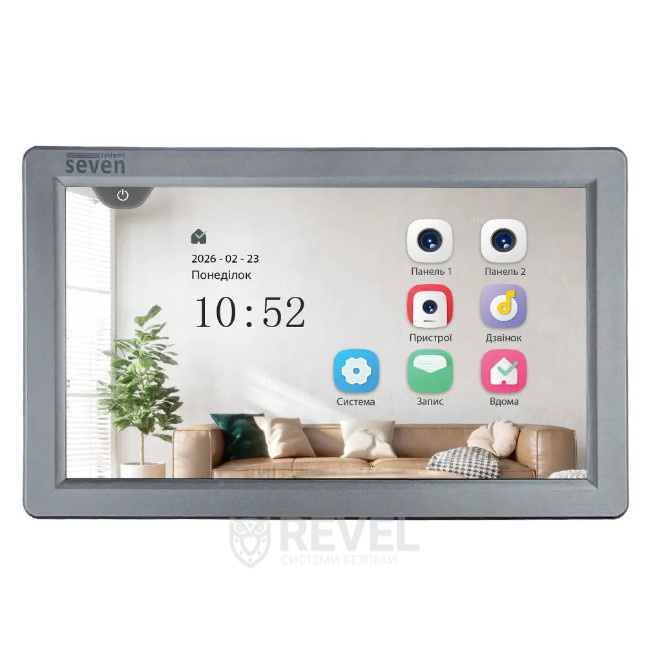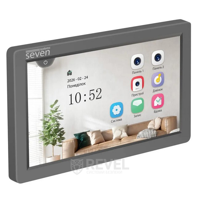 Відеодомофон SEVEN DP-7570 FHD IPS – новинка 2026 року з ультратонким корпусом та елегантним дизайном, оснащений сенсорним IPS-екраном з роздільною здатністю 1024×600 для детального відображення відео. Пристрій підтримує роботу з двома панелями виклику, легко монтується завдяки комплектним аксесуарам та гармонійно вписується в сучасні інтер'єри завдяки класичним кольорам. Також домофон оснащений вбудованим реле для комфортного керування електрозамком.