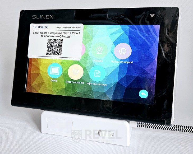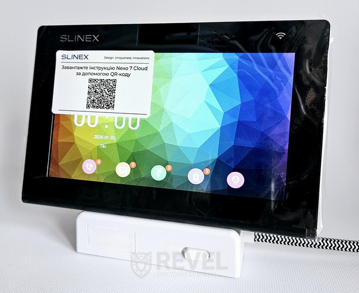 Nexo 7 Cloud виконаний у сучасному мінімалістичному корпусі, який гармонійно вписується у будь-який інтер'єр. Сенсорний IPS-дисплей забезпечує легке та інтуїтивне керування, а інтерфейс відображає всю необхідну інформацію: дзвінки, сповіщення про рух, поточну погоду та стан підключених пристроїв.
