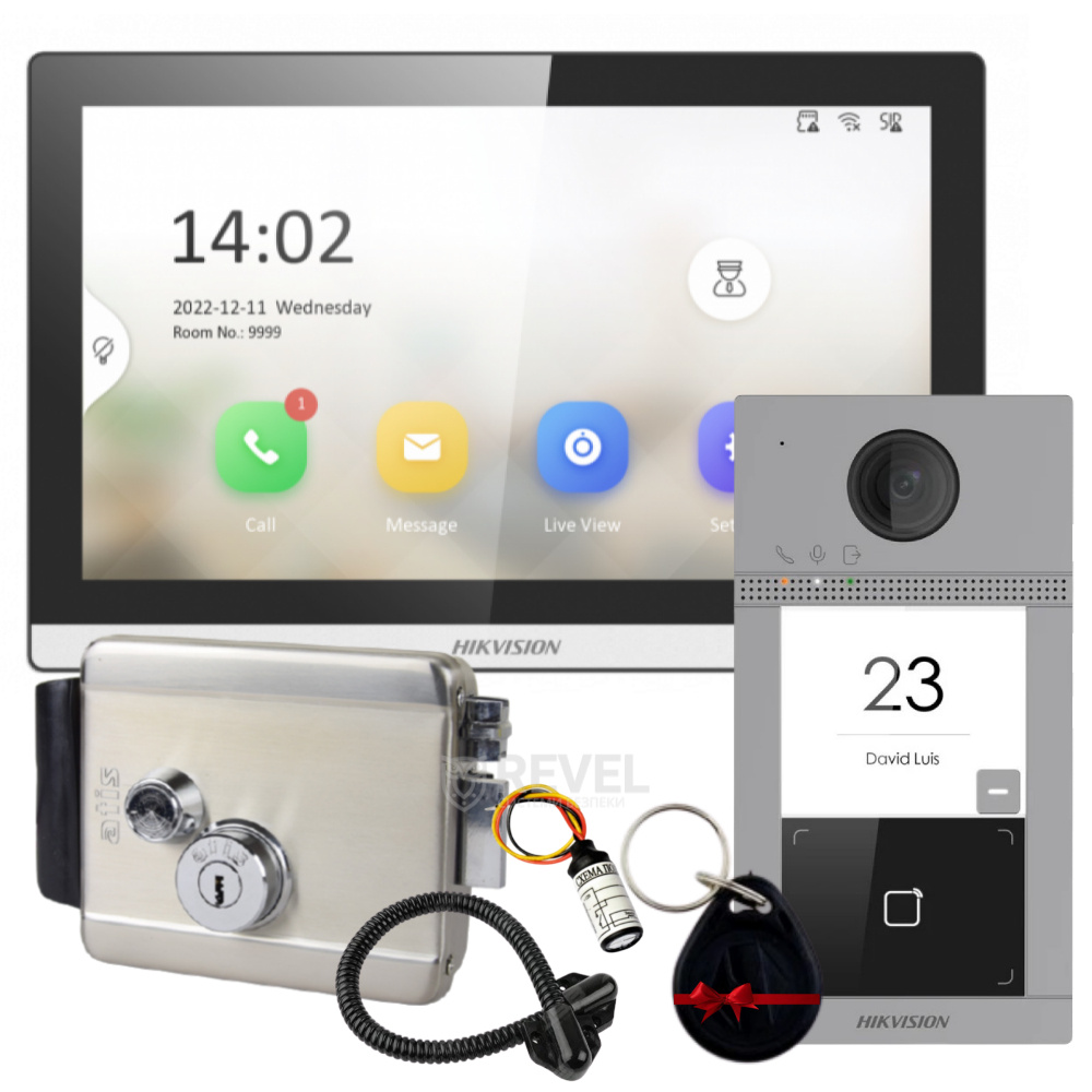 Сучасний комплект відеодомофону із замком Hikvision DS-WF63-KV2R-EM — відмінне рішення для приватного будинку, де важлива надійність, функціональність та простота встановлення. Головна особливість цього обладнання — бездротове підключення по Wi-Fi домофону та панелі виклику. Це означає, що немає потреби прокладати кабель між цими пристроями — достатньо налаштувати Wi-Fi, і система готова до роботи.