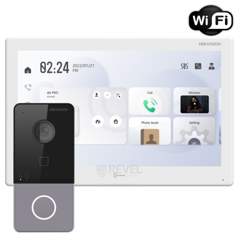 Преміум IP домофонна система світового бренду Hikvision. У комплекті монітор на базі Android, з вже інтегрованим додатком Hik-Connect, що дозволяє керувати панелями виклику, охоронною сигналізацією Hikvision і відеокамерами або реєстраторами Hikvision (все як у мобільному додатку Hik-Connect). Також в комплекті стильна IP-виклична панель з вбудованим зчитувачем, яка працює по PoE. Монітор підтримує живлення PoE.