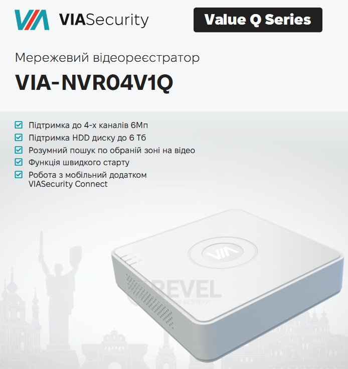 Відеореєстратор підтримує розумний пошук по всім каналам, що полегшує навігацію по архіву. Завдяки мобільному додатку VIASecurity Connect користувач має повний контроль над системою навіть на відстані.
