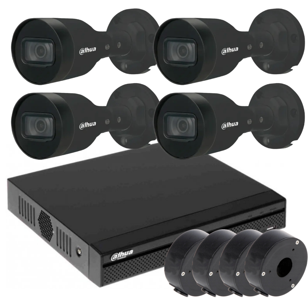 IP комплект видеонаблюдения на 4 уличные 2Мп камеры с ИК подсветкой и аналитикой Dahua DH-4BULBE-2MP-IR (Black)