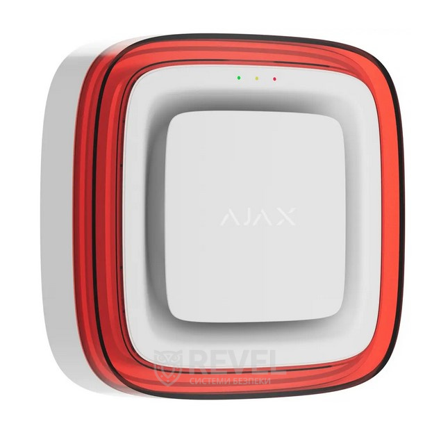 Пристрій інтегрується з системою Ajax через радіопротокол Jeweller, забезпечуючи зв’язок із ППКП на відстані до 1700 м за відсутності перешкод. Звуковий сигнал і світлодіодна рамка (частота блискання 0,5 Гц) активуються під час тривоги, забезпечуючи чітке сповіщення. Події, такі як тривога, спрацювання тампера, втрата зв’язку чи низький заряд батареї, передаються через застосунок Ajax PRO Desktop або на пульт у форматах SurGard, SIA, ADEMCO 685, із зазначенням типу пристрою, імені, зони, кімнати та місця розташування.