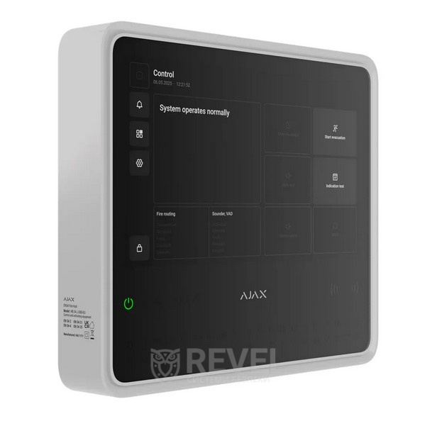 Панель керування містить усе, що може знадобитися фахівцям з пожежної безпеки — у миттєвому доступі. Великий сенсорний екран безвідмовно реагує на дотики, забезпечує плавну навігацію й легке керування системою пожежної сигналізації. Журнал подій на екрані чітко відображає, які пристрої та зони потребують уваги — жодного шансу пропустити важливе.