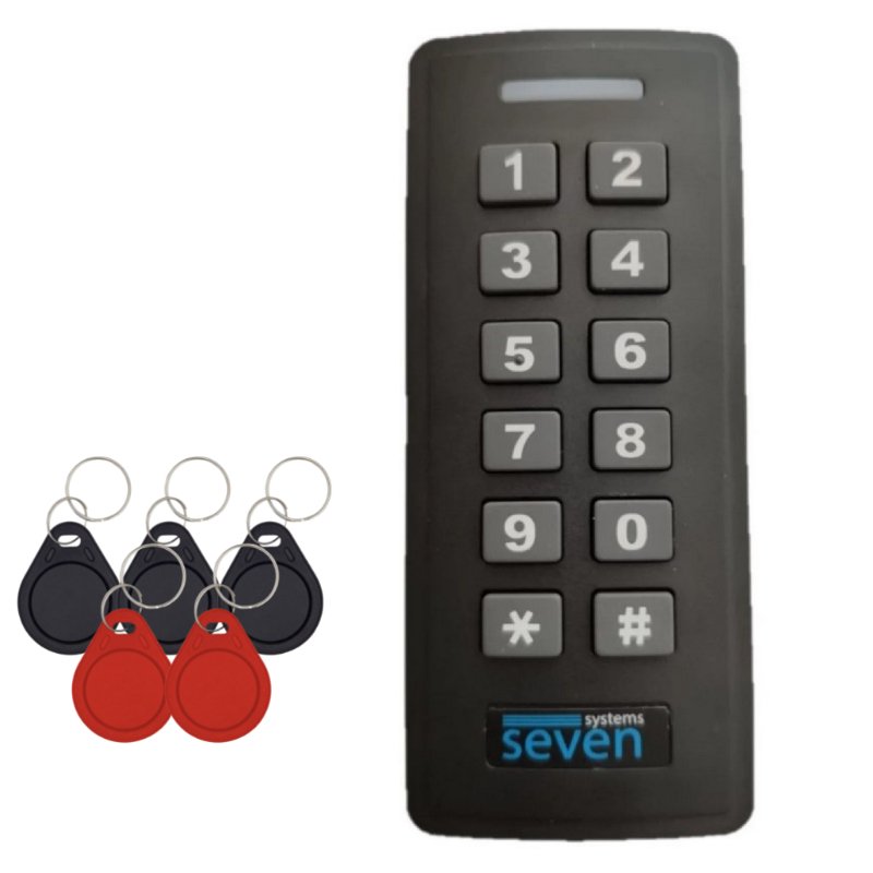 SEVEN CR-7467b — це автономний контролер зі зчитувачем EM-marine з кодовою клавіатурою у пластиковому корпусі для роботи в системах контролю доступу. Дозволяє працювати в 3-х режимах проходу: Картка, PIN-код, Картка + PIN-код.