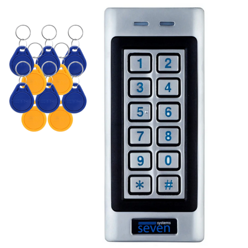 SEVEN CR-775S — це автономний контролер зі зчитувачем EM-Marin з кодовою клавіатурою в антивандальному корпусі з металевими кнопками (з підсвічуванням цифр) для роботи в системах контролю доступу. Корпус із нержавіючої сталі, що дозволяє протистояти корозії з часом. Дозволяє працювати в 3-х режимах проходу: Картка, PIN-код, Картка + PIN-код.