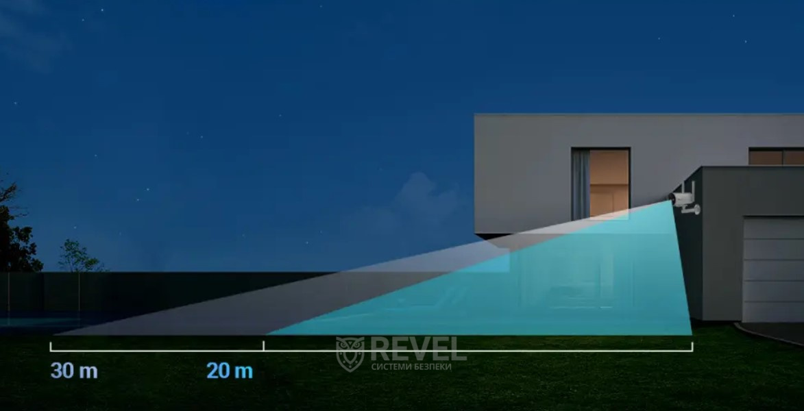 Камера також оснащена інфрачервоним підсвічуванням для нічного бачення на відстані до 30 метрів, що дозволяє отримувати чітке зображення навіть у повній темряві. Завдяки захисту від погодних умов (IP67) камера може працювати в будь-яких умовах. Підтримка карт пам'яті до 512 ГБ дозволяє зберігати великі об'єми відео.