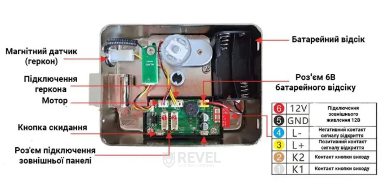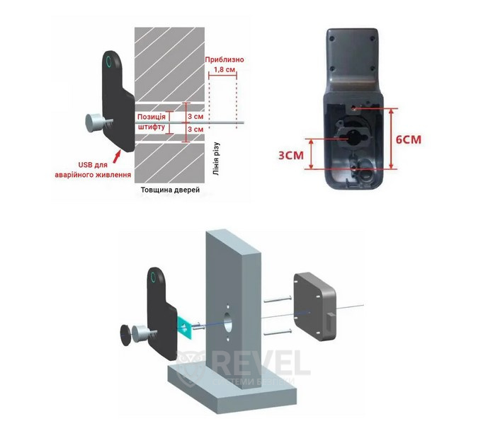 У разі розрядки батарей замок має резервні способи відкриття: механічний ключ або роз'єм Typе-C для тимчасового живлення від повербанку.