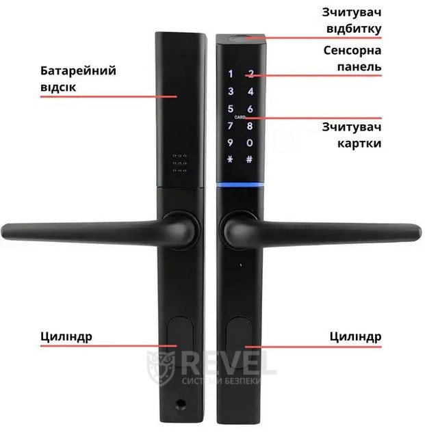 Замок підтримує ручне блокування зсередини: на внутрішній ручці розташований перемикач електронного блокування. У заблокованому режимі двері можна відчинити лише адміністратору або за допомогою механічного ключа.